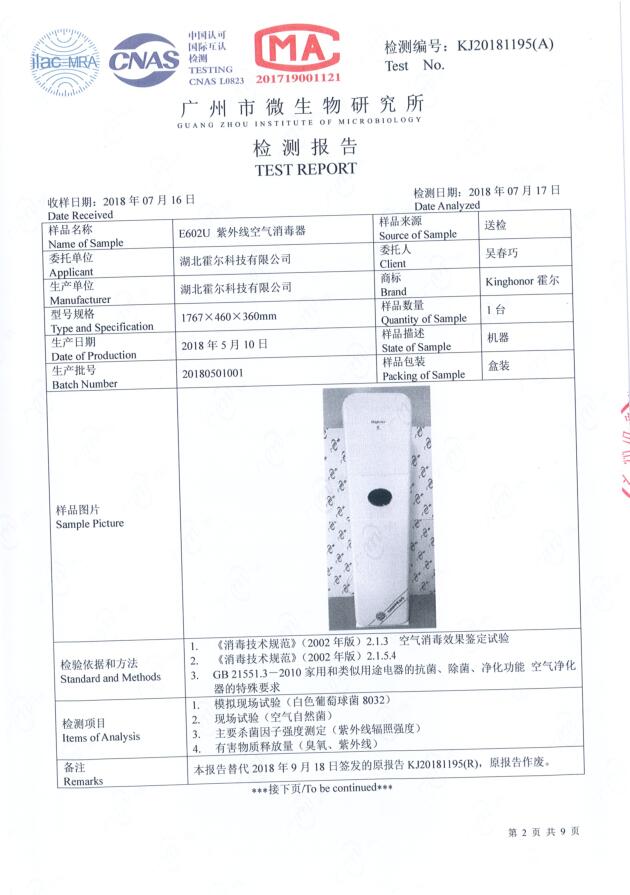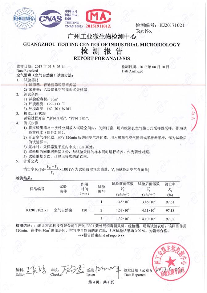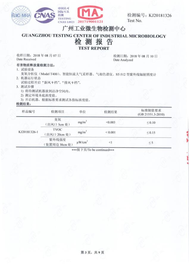 采用無臭氧紫外線殺菌技術,通過照射殺滅空氣中的細菌。作用于微生物的DNA,破壞DNA結構,使之失去繁殖和自我復制的功能從而達到殺滅細菌作用。