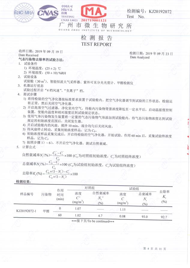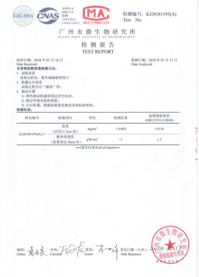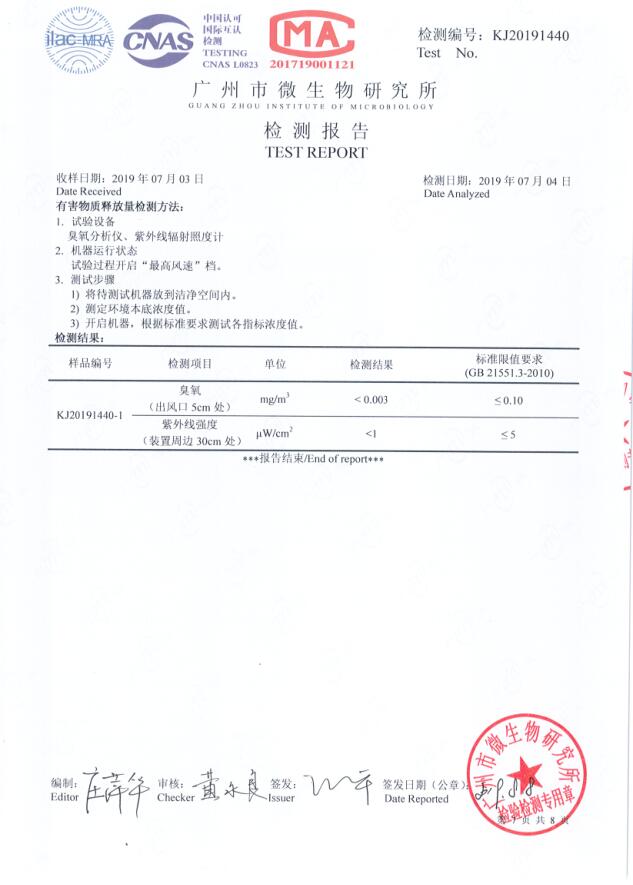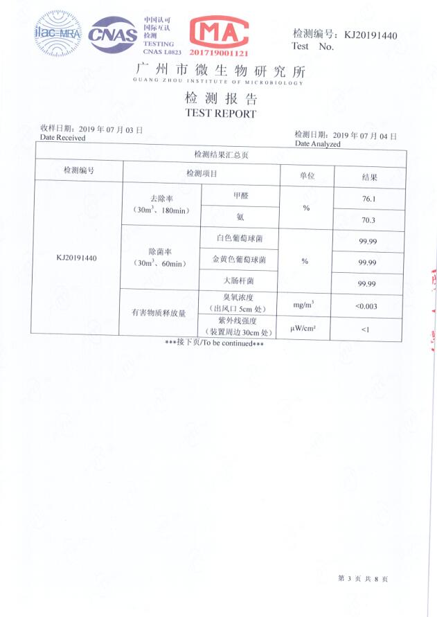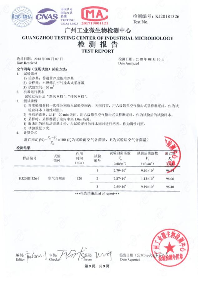 采用光水離子凈化技術,使用寬光譜紫外線照射特殊處理的石英管蜂窩式矩陣,以及多種貴金屬催化劑的作用下產生包括羥基離子、超氧離子和生態化負離子在內的凈化因子,與室內空氣中的污染物接觸反應產生原子能鍵合分解作用。活化的凈化因子可以高效殺滅有害微生物、細菌和病毒,還能主動分解甲醛、苯、氨等有害氣體,消除空氣中的霉味、臭味,從而實現除味殺菌的作用。