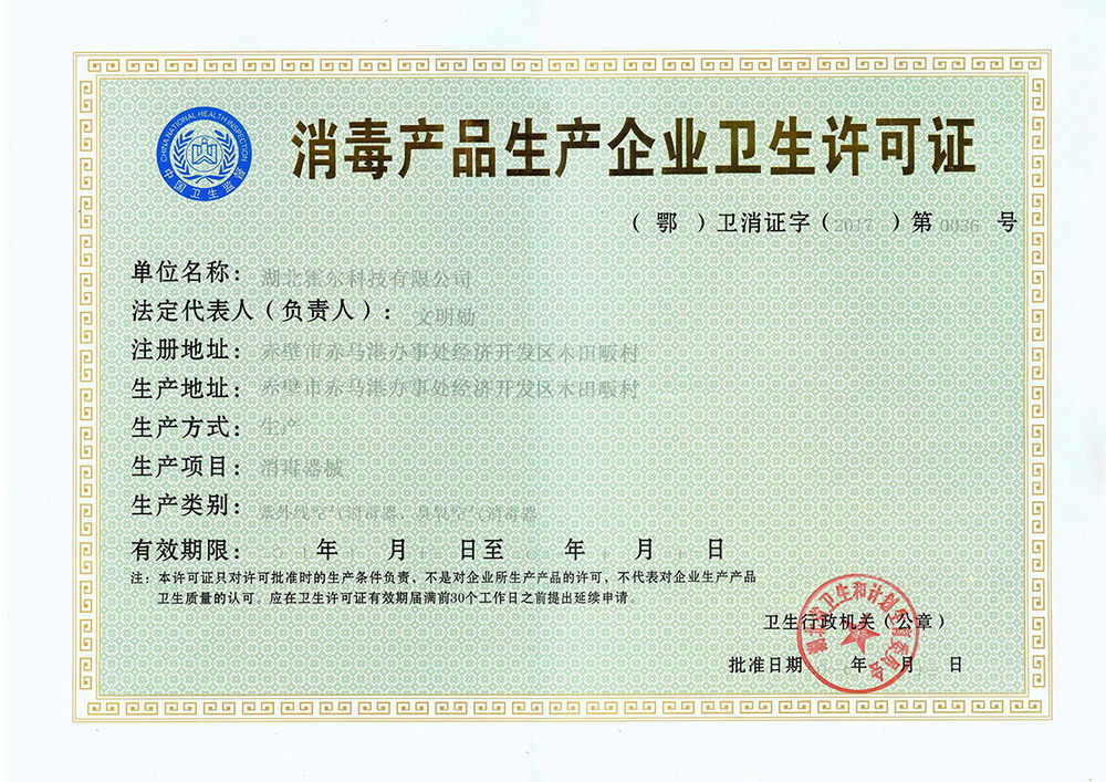 衛生許可證號:(鄂)衛消證字(2017)第0036號